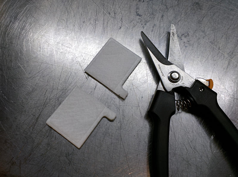 The filters were large enough to permit me to use just half of a filter to cover the intake on the fan.